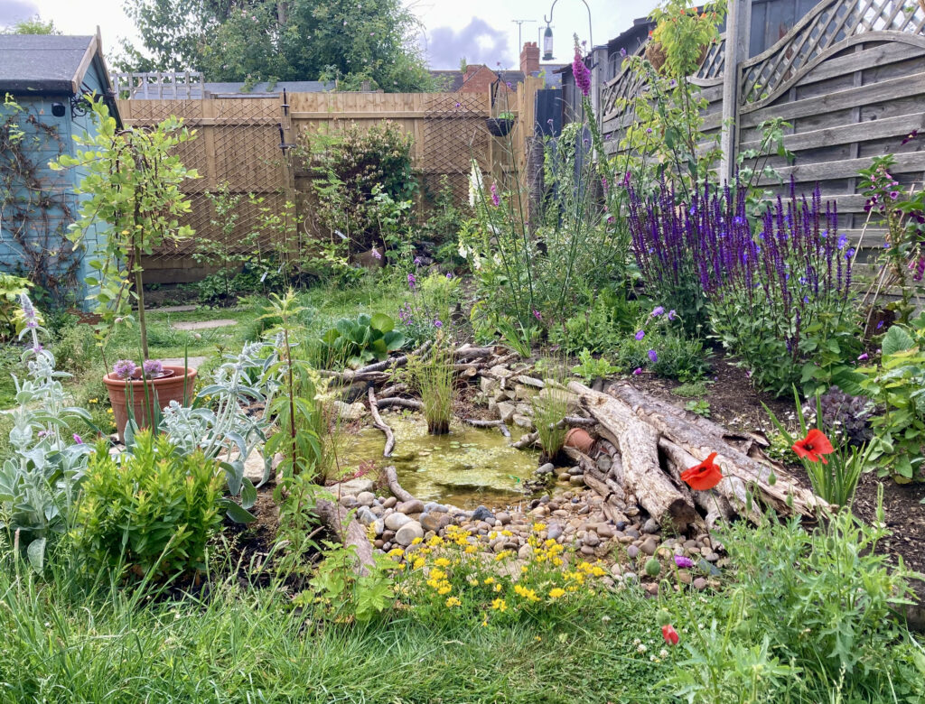 Caroline’s Somerset garden has a variety of plants, which will provide insect food and shelter for hedgehogs. Plus a hedgehog safe pond with a sloping edge – brilliant to see.