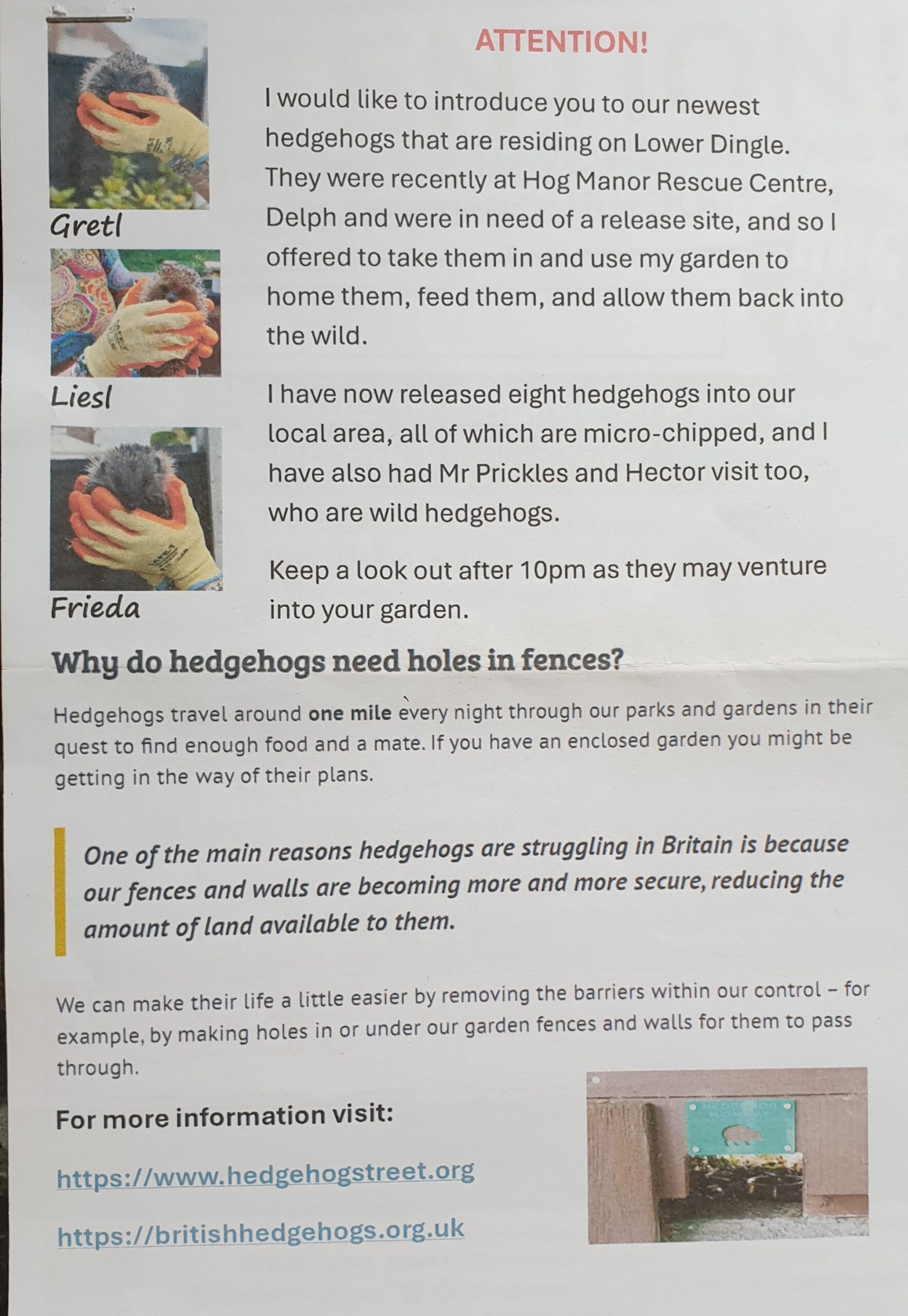 Help hedgehogs